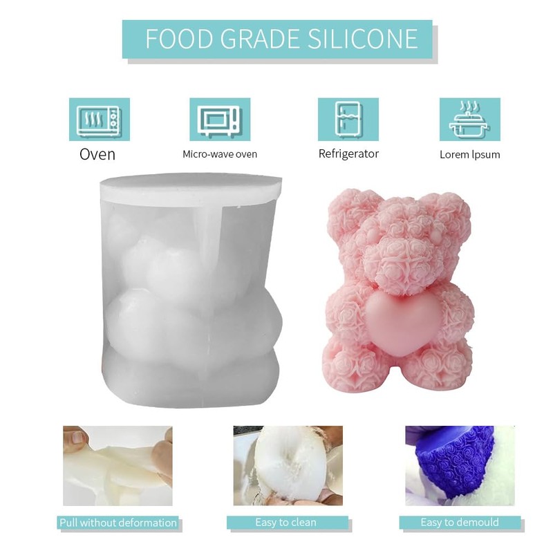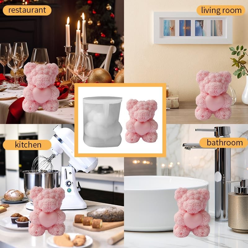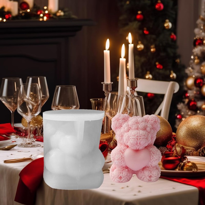 1-Piece Set of Rose Bear Silicone 3D Rose Bear Valentine's Day Silicone Mold Gift Making Wax Clay Resin Birthday Gift Valentine's Day Gift Resin Casting Mold DIY Candle Fragrance Wax soap Clay