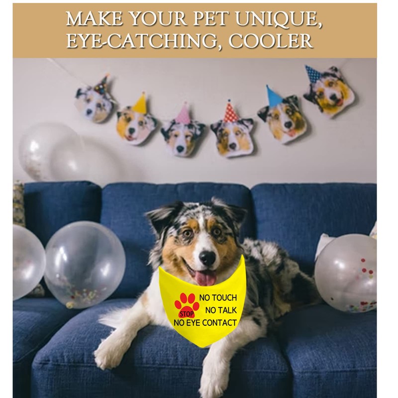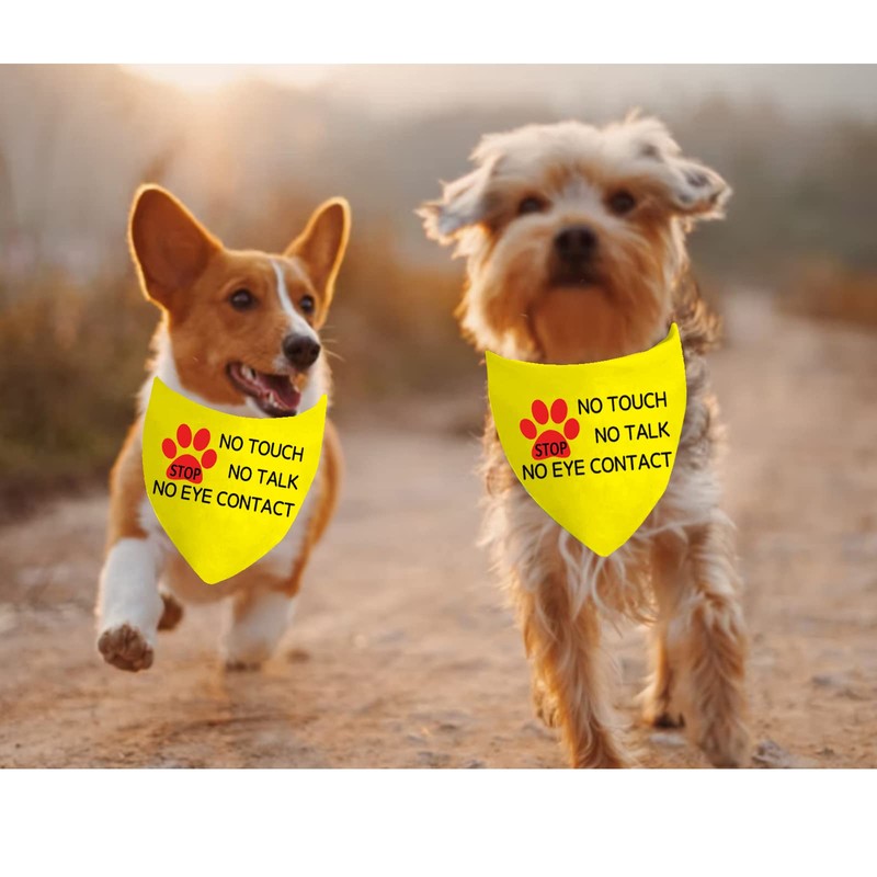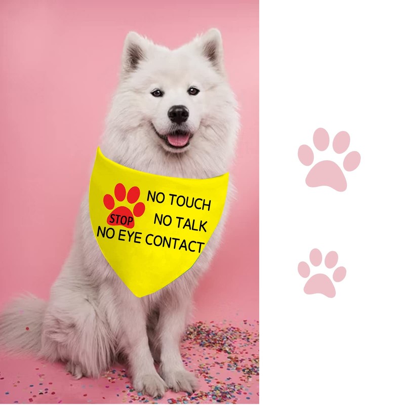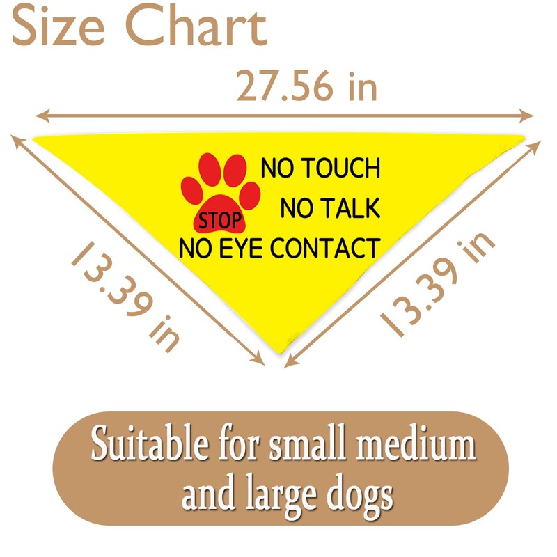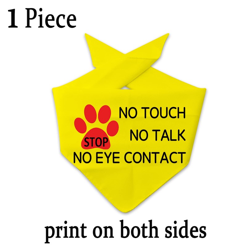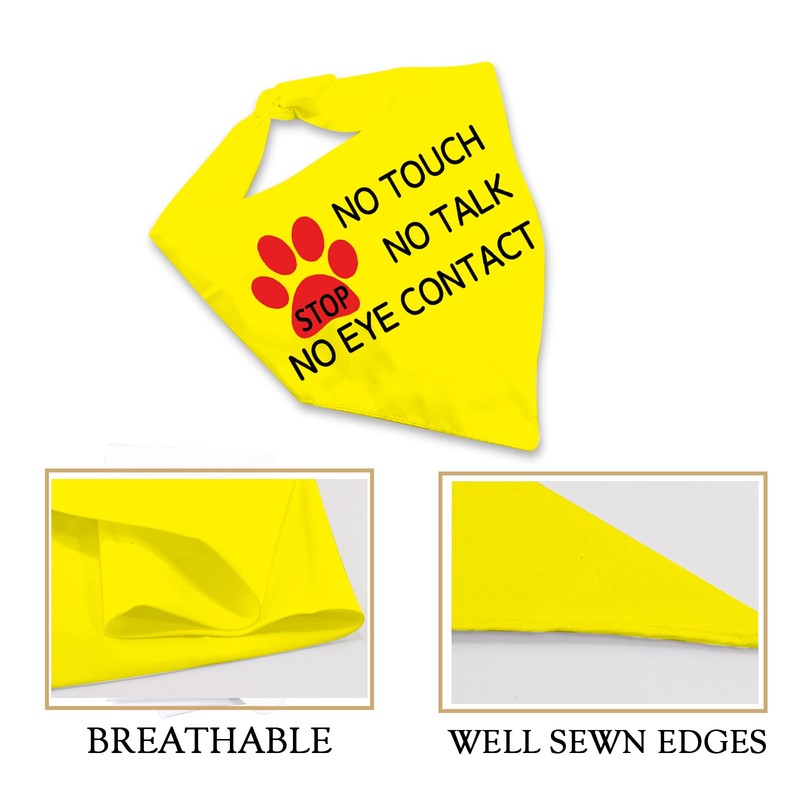 • Pack of 1 yellow bandana, It reads: DO NOT PET/NO TOUCH NO TALK NO EYE CONTACT/DO NOT DISTRACT.