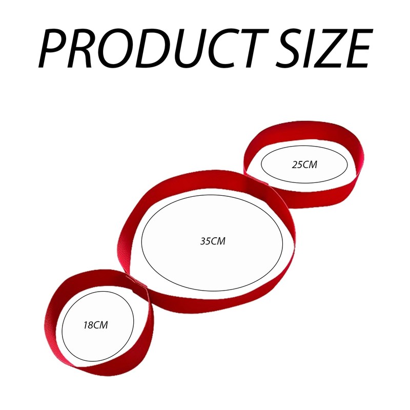 • 1. Package contents: Contains 1 piece of red three-ring stretch tape with diameters of 18cm, 25cm and 35cm. Sports products suitable for home use,