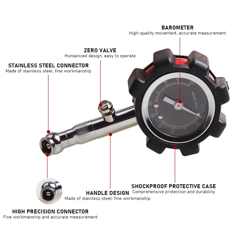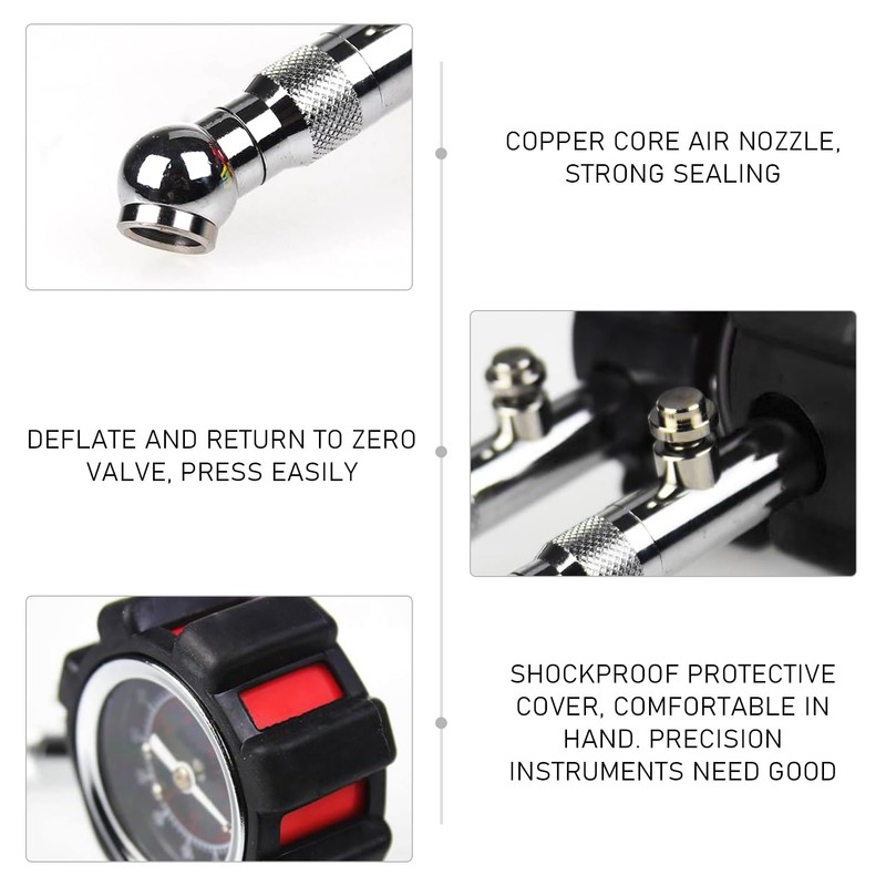 - [360° Turntable] Our pressure gauge has a 360° rotating chuck that can make it easier to insert the valve and provide you with comfort when using.