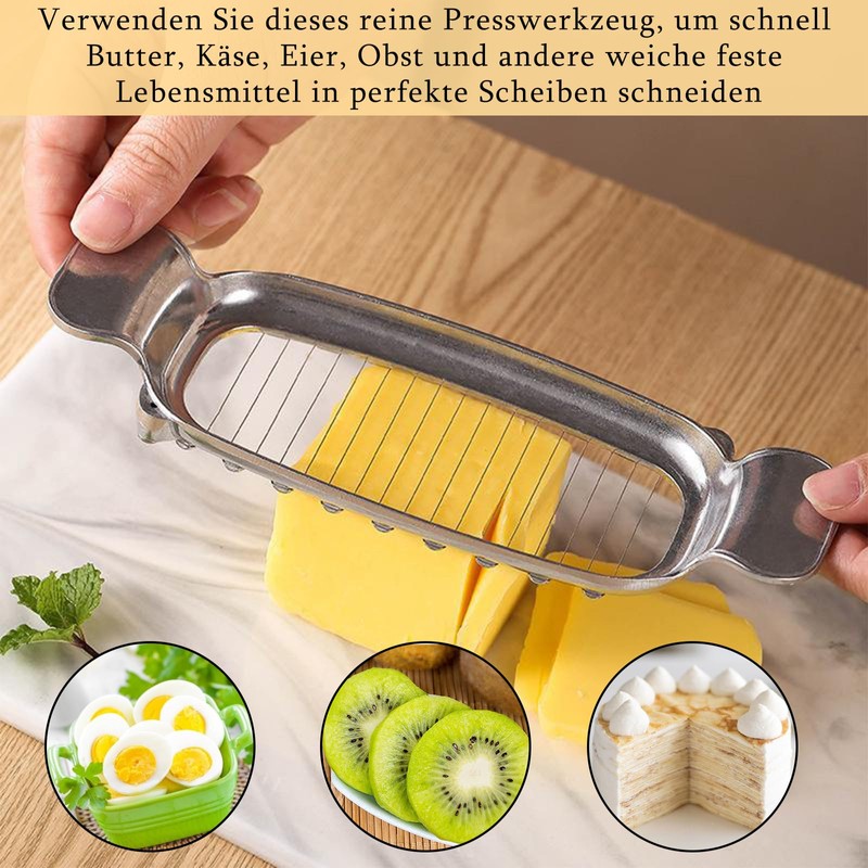 - VERSATILE CUTTING FOR VARIOUS FOODS In addition to butter and cheese, this all-purpose slicer is also great for cutting fruits, eggs and other softer solid foods. Its multi-purpose design makes it an essential addition to any kitchen and provides a fun and practical way to expand your cooking repertoire and discover new culinary possibilities.