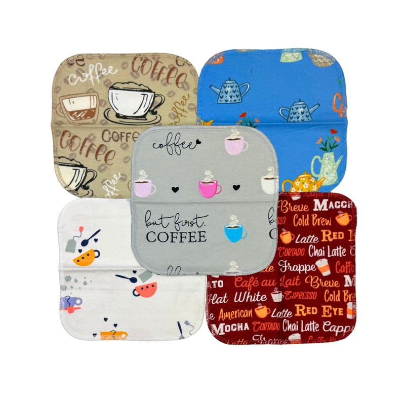 1 Ply Printed Flannel 8x8 Inches Little Wipes Set of 5 Coffee Break- Proudly Made in the USA!