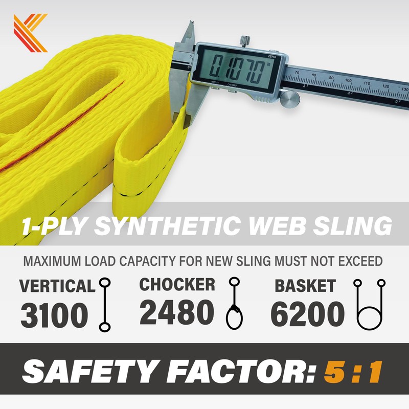 - 1-Ply and Heavy Duty Work Load - Vertical load 3200lbs ; Choker hitch 2560lbs; Basket hitch 6400lbs