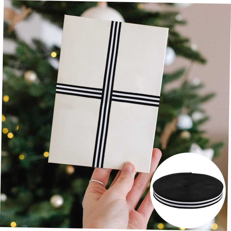 1 Roll 50 Yards Black and White Striped Webbing Home Goods Decor Ribbon Wrap Ribbon