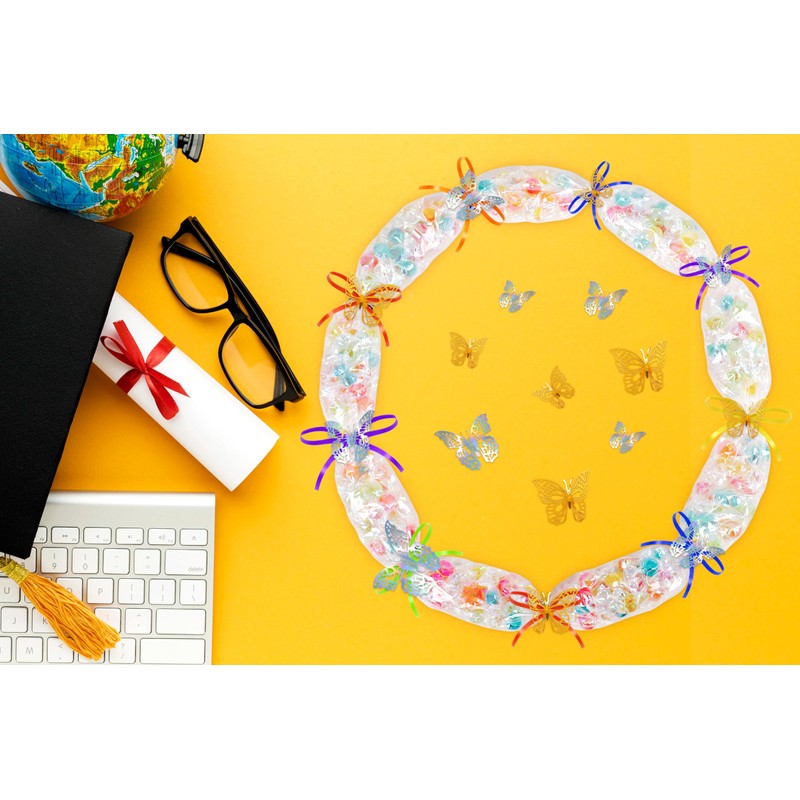 - Lei making kit: Get 1 roll plastic bags + 6pcs different colors ribbons+24pcs plastic butterfly