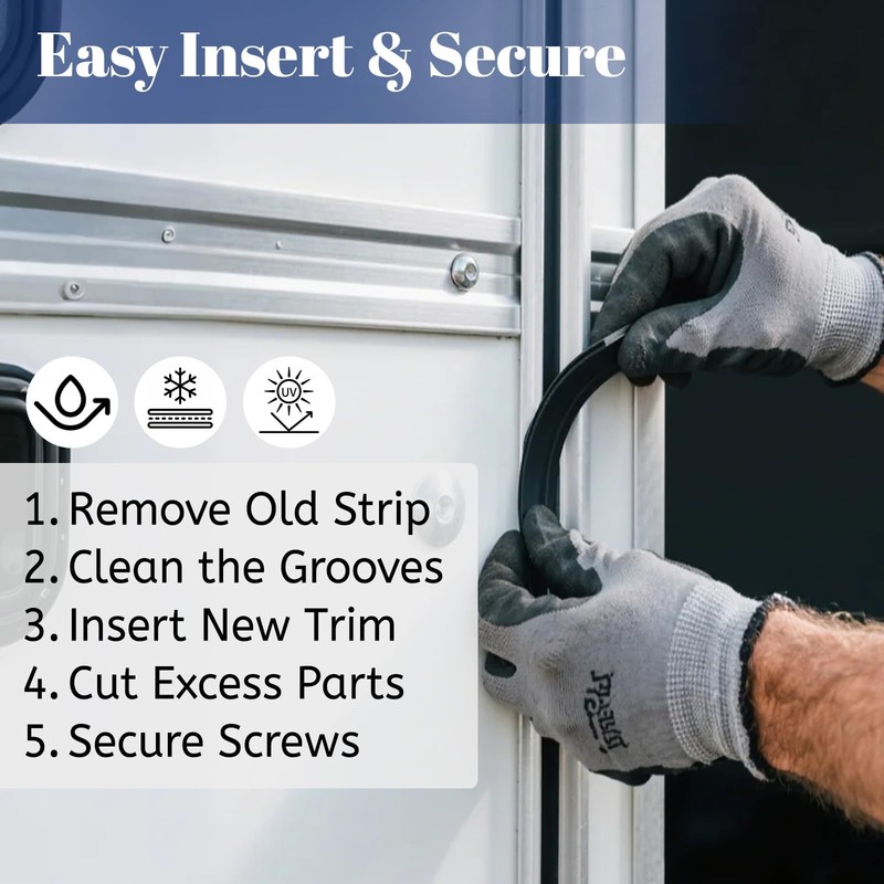 - Simple Installation: Our easy RV insert trim design allows for quick RV trim molding insert replacement, just remove the old strips, clean the grooves, insert the new trim, trim any excess, and securely fasten the screws for a perfect fit