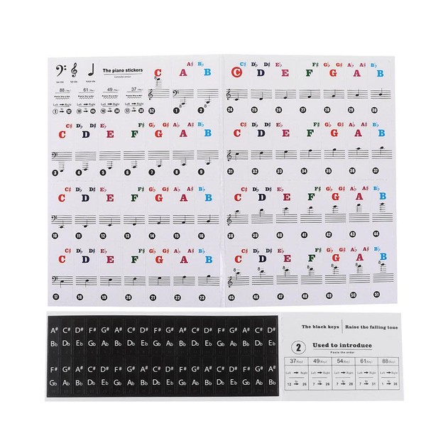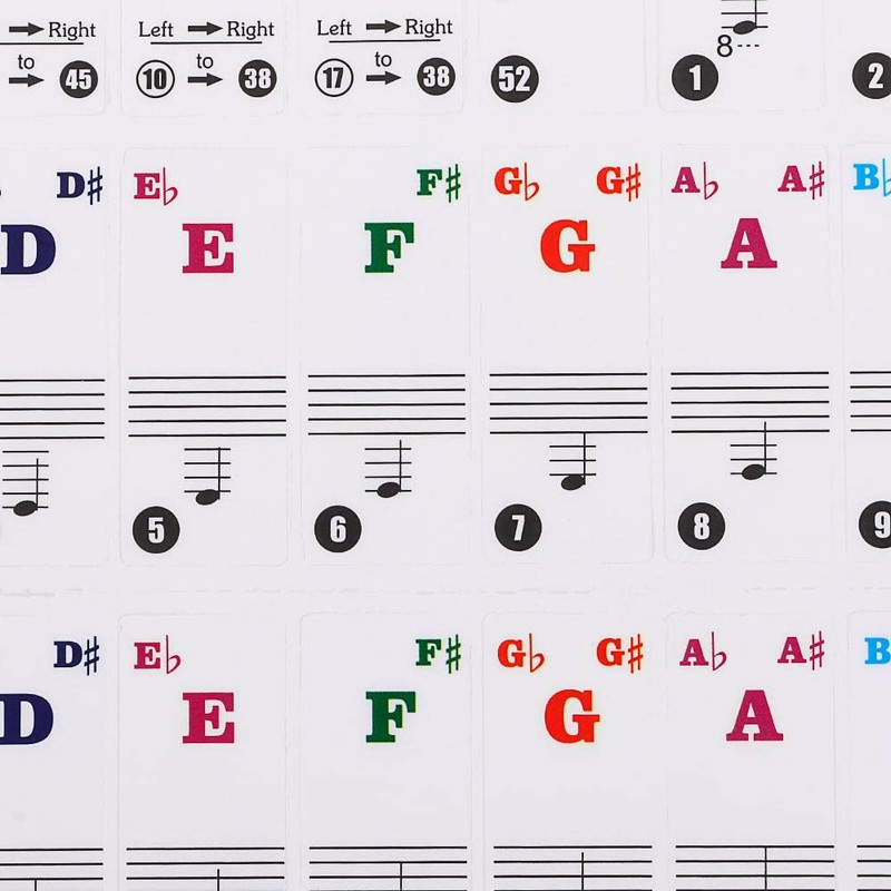 1 Set Electronic Keyboard Stickers Music Label Notes 88/61/54/49 Key Transparent for White Keys Piano Decoration(1.37inch,Transparent)