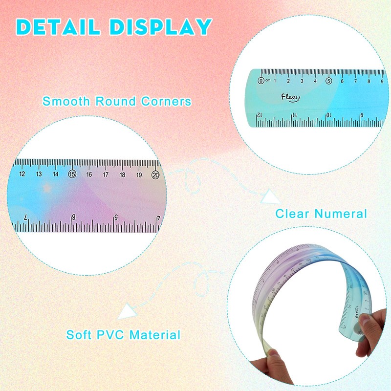 • 【Attractive Gradient Style】Designed with a gradient color style, our rulers feature bright and vibrant colors that are sure to capture students' attention. The clear scales and appealing design not only make learning more enjoyable but also help increase students' interest in their studies.