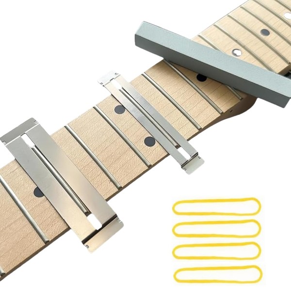 1 Set Guitar Fingerboard Protector Set with Metal Fingerboard Fret Protector Guards, Grinding Stone and Rubber Band, for Guitar, Bass, Ukulele String Fret Polishing Radius Sanding & Maintenance