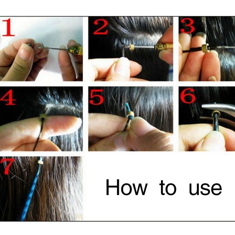1 Set Hair Extension Tool Kit Plier Hook Pulling Needle 200Pc or so Micro Silicone Link Rings Beads for Professional Hair Styling Tools Accessory (#13)
