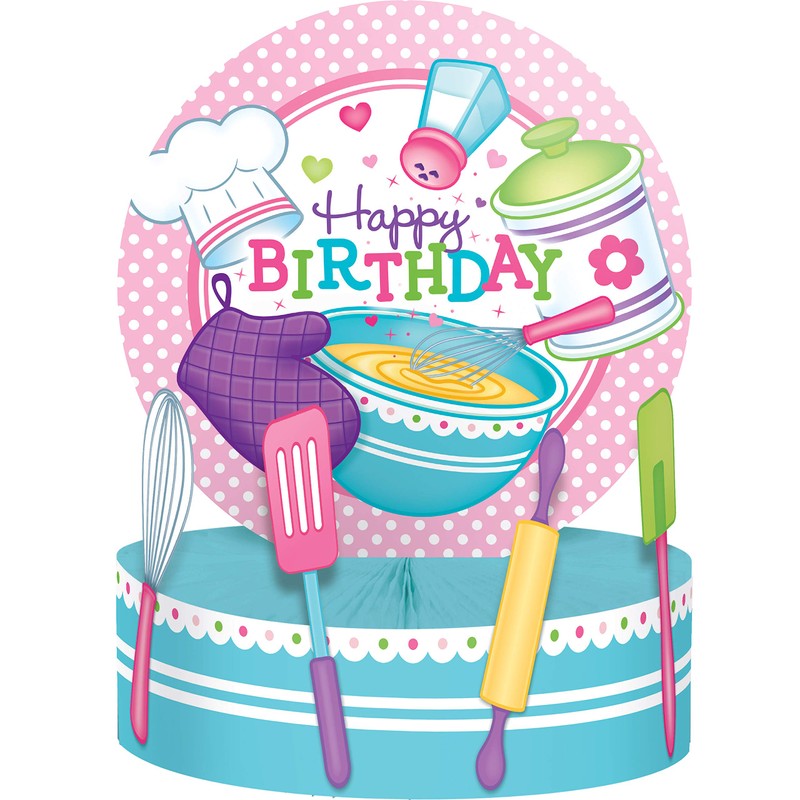 - Stir up the party with colorful fun; design features a variety of bright utensils, reads: happy birthday