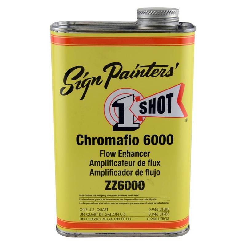 ChromaFlow from 1 Shot is designed to act as a flow-enhancing additive to be used with brushed paint applications. Use with 1 Shot Lettering Enamels and Chromatic Bulletin Colors. When used sparingly it will increase brush control and decrease brush drag, while enhancing paint flow and leveling characteristics. It is especially suitable for lettering and pin-striping applications. Not to be mistaken as a reducer or for use in airbrush or spray applications. 32 ounce (1 quart) can of ChromaFlow is made in the USA.