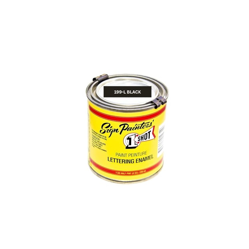 1 Shot Lettering Enamel Paint, Professional Pinstriping and Lettering Paint 4 Ounce Can (199L- Lettering Black) 199L/4Z