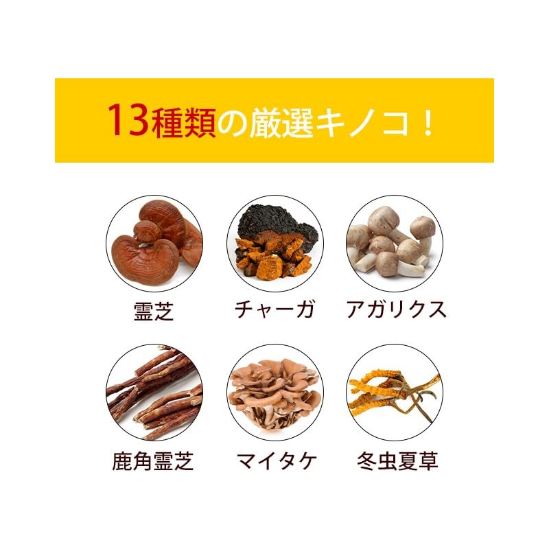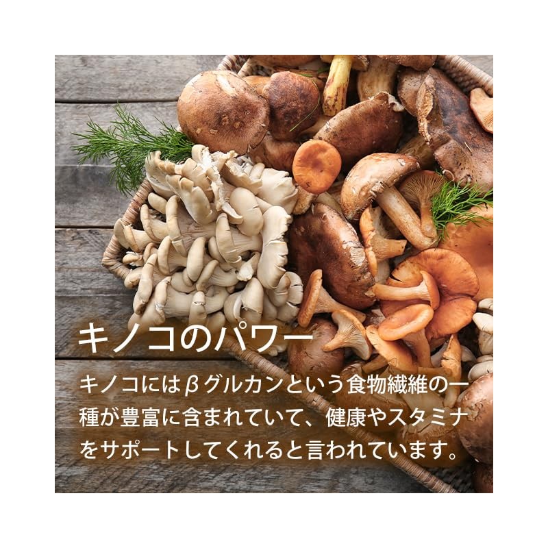 - 13種のキノコ+ヒハツで負けないカラダに!β-グルカンとはキノコや酵母に多く含まれる食物繊維の一種で、スタミナ補給をサポートしてくれると言われています。本品には厳選した13種のキノコに加えてめぐりサポートのヒハツを配合しました。