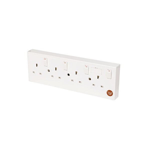 - Electrical 4 Way Plug Extension Lead Dencon 4 Switched Sockets ADP 4x13A White