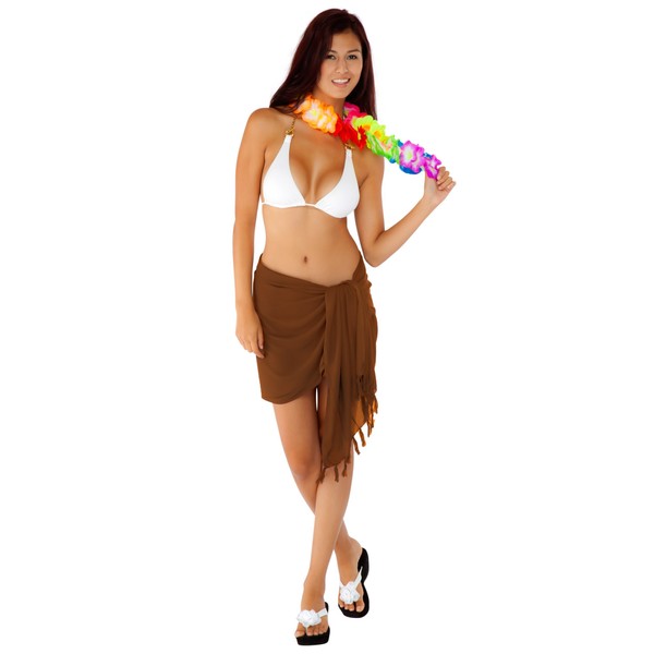 1 World Sarongs Womens Solid Half/Mini Swimsuit Cover-Up Sarong in Light Brown