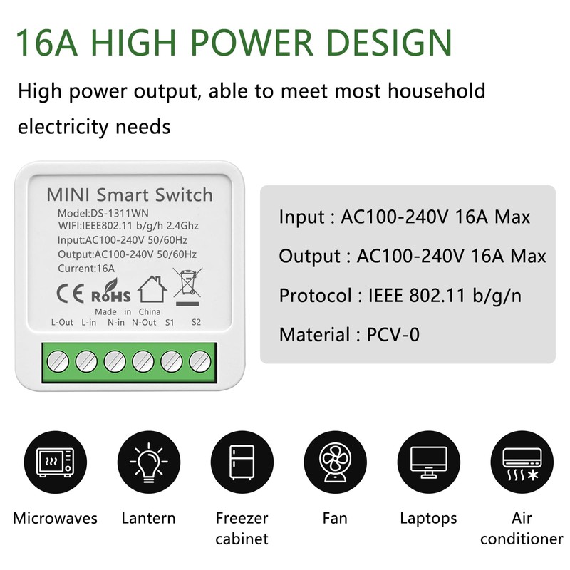 • Smart your traditional lights: Alexa light switch smart home thanks to its mini design (4.1 x 4.1 x 2 cm), you can use this switch as a surface-mounted or flush-mounted switch that can make your home lighting intelligent. Neutral conductor required, AC 100-240V, 16A max.