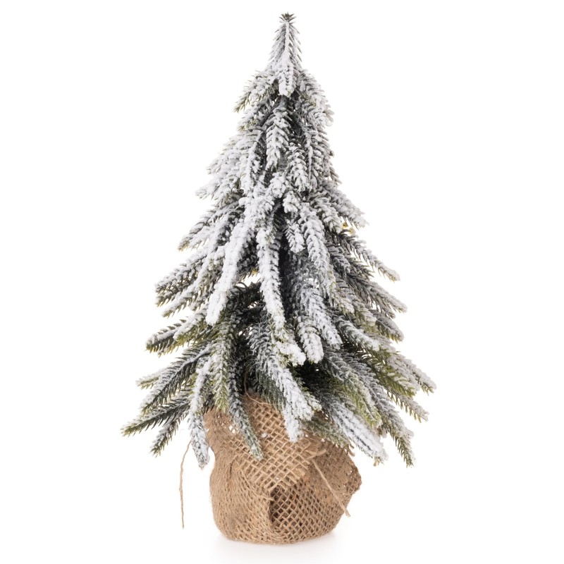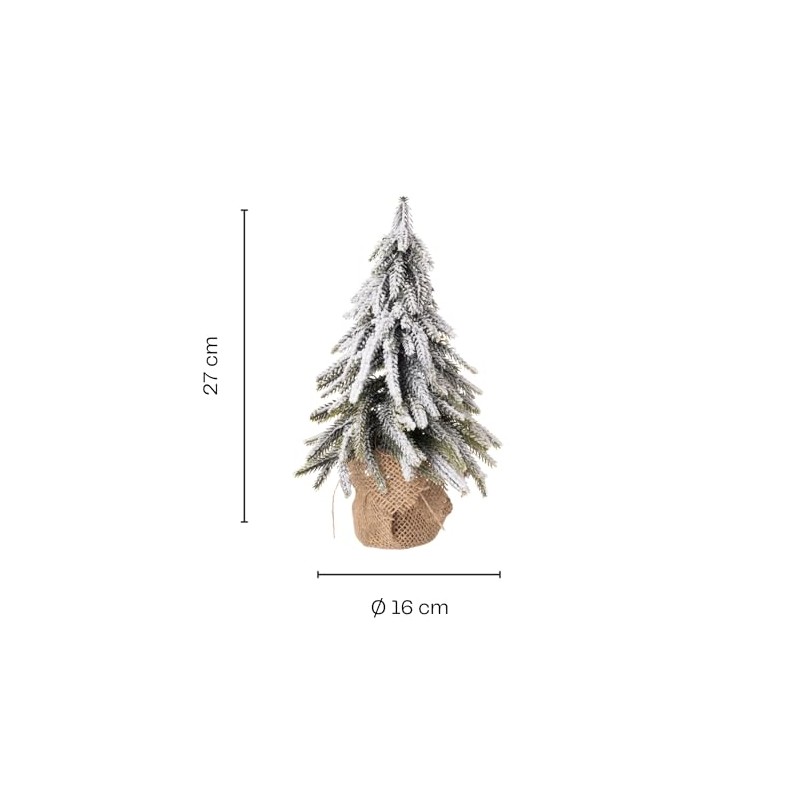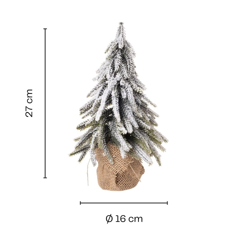 Immerse yourself in the magical world of the Christmas season with our artificial Christmas tree "Winter Fairytale". This small tree is available in heights of 20 or 27 cm and is perfect for an atmospheric decoration in your home. The artfully designed snow flocking gives it a touch of winter magic and makes it shine. The rustic pot, coated with jute, gives the tree a nostalgic charm and makes it a real eye-catcher in any room. Whether on the table, on the shelf or as part of your festive table decoration, this atmospheric Christmas tree with snow finish provides a cosy atmosphere and spreads the anticipation of the party. Look forward to the holidays with this adorable little tree.