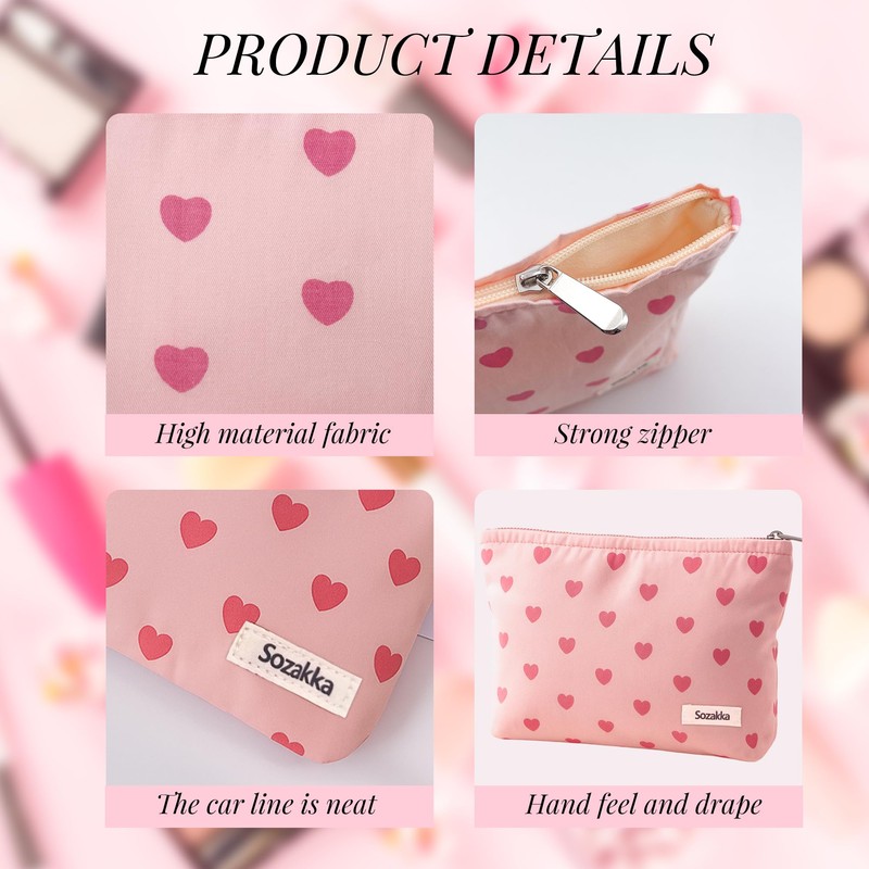- DURABLE & STYLISH DESIGN - Made of durable canvas, durable and breathable. The cute heart pattern makes your make-up bag an eye-catcher - ideal for group trips
