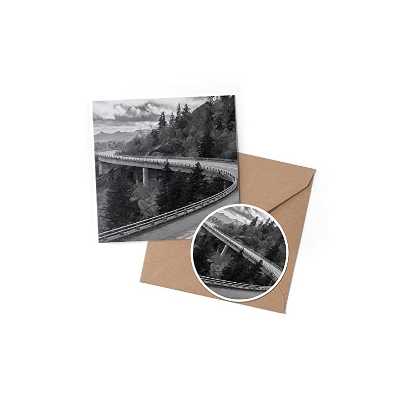 1 x Greeting Card & 10 cm Round Sticker Set - BW - Blue Ridge Viaduct North Carolina US - Birthday Thank You Friend Lover Fan Mum Dad Kids #37139