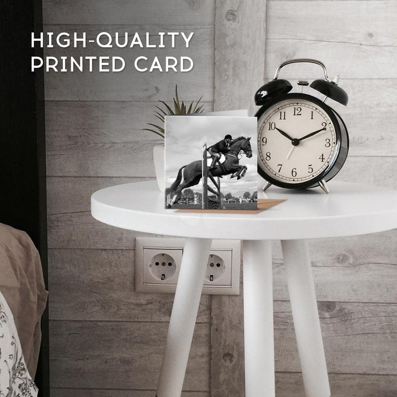 1 x Greeting Card BW - Chestnut Horse Jumping - Blank Birthday Celebration Anniversary #38824