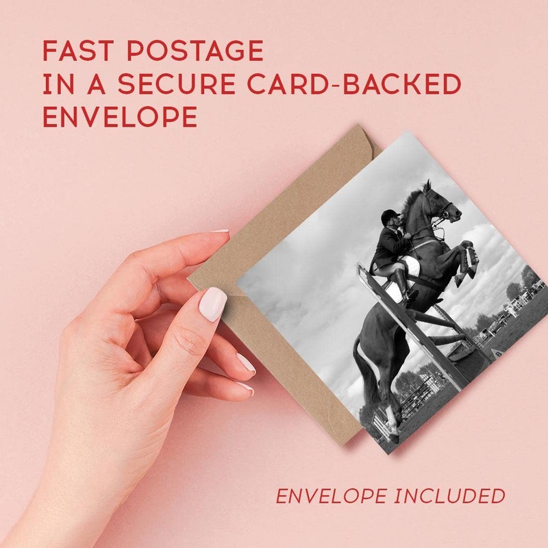 Fast postage in a secure card-backed envelope which fits through a standard letter box.