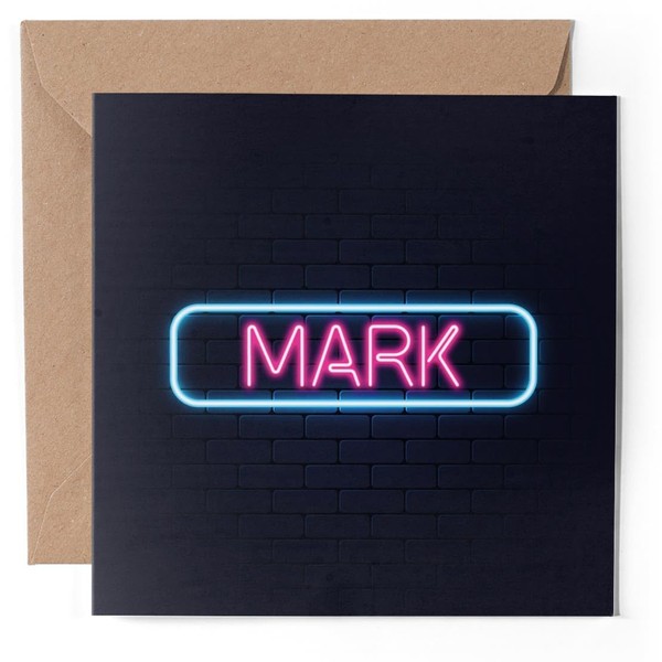 1 x Greeting Card - Neon Sign Design Mark Name - Blank Birthday Celebration Anniversary #352267