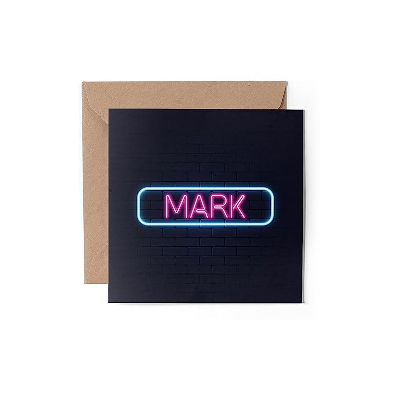 1 x Greeting Card - Neon Sign Design Mark Name - Blank Birthday Celebration A...