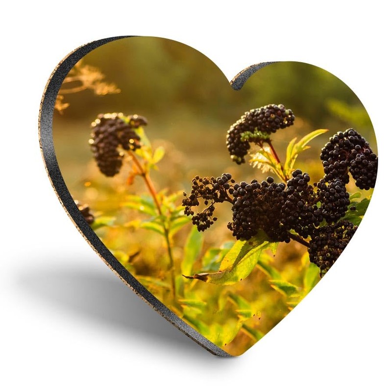 1 x Heart Coaster - Black Elderberry Plant Nature Berries Cork Backed MDF Glossy Tea Coffee Accessory #50269