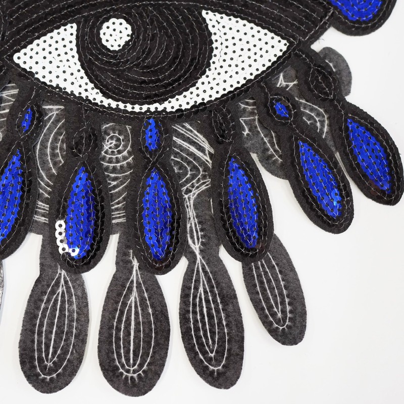 1 x Large Eyes Sequin Embroidered Hot Melt Patch Clothes Decor Patch