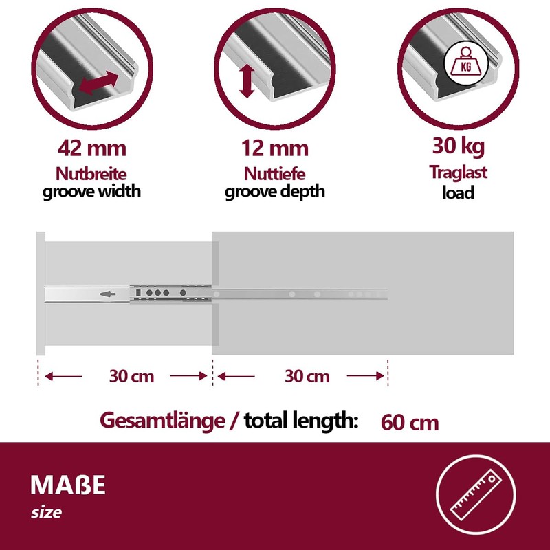 - Various sizes – our running rails are available in different sizes – please choose your desired size above. They can hold up to 30 kg and are available in lengths 25-55 cm.