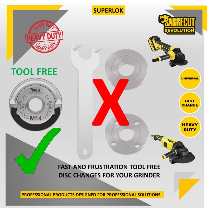 SabreCut SUPERLOK is a fast change heavy duty retaining flange nut for all angle grinders. It offers fast and frustration free accessory changes on your angle grinder.