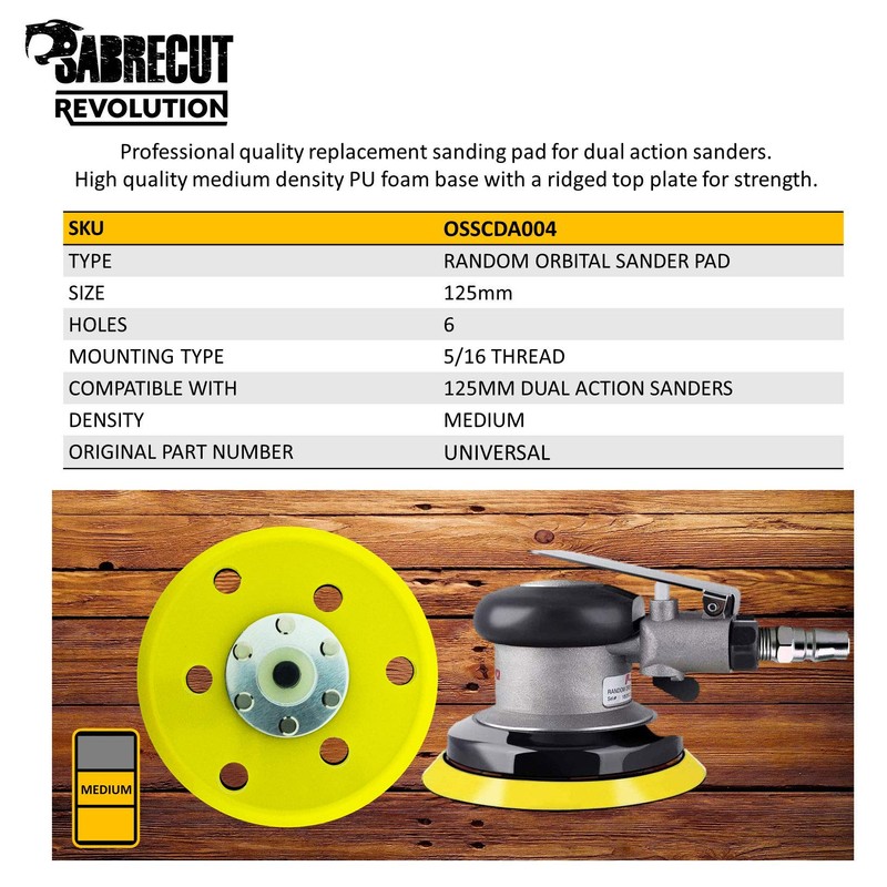 - 1 piece SabreCut 125mm Medium Density Polyurethane orbital sander backing pad
