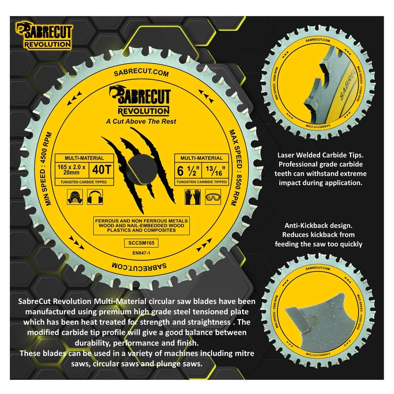 - 1 x SabreCut Revolution Multi-Purpose Circular Saw Blade - SCCSM165_40