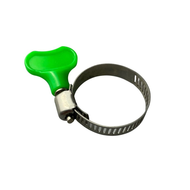 - TOOL FREE INSTALLATION Can be quickly tightened and loosened. Easy to put on and take off the pond hose clamps. A screwdriver is not required. Simply turn the yellow handle to loosen or tighten it. The plastic handle will not hurt your fingers compared to the metal