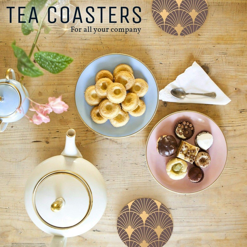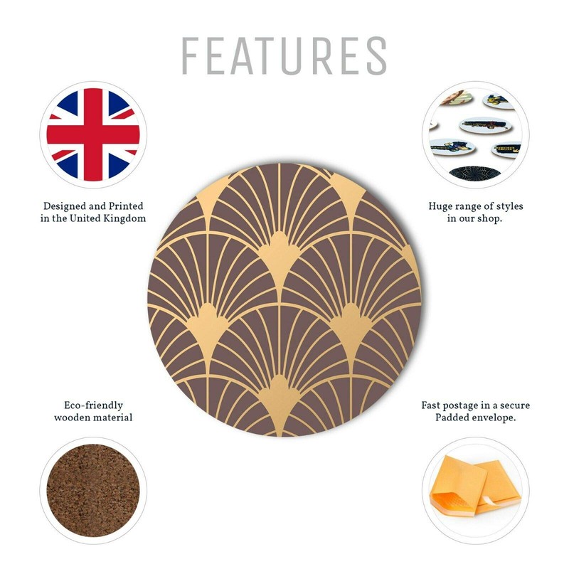1 x Vintage Art Deco Pattern Coaster - Round Coasters Kitchen Drinks Brown Gold Effect Wallpaper Nouveau Elegant Retro Artistic #12761