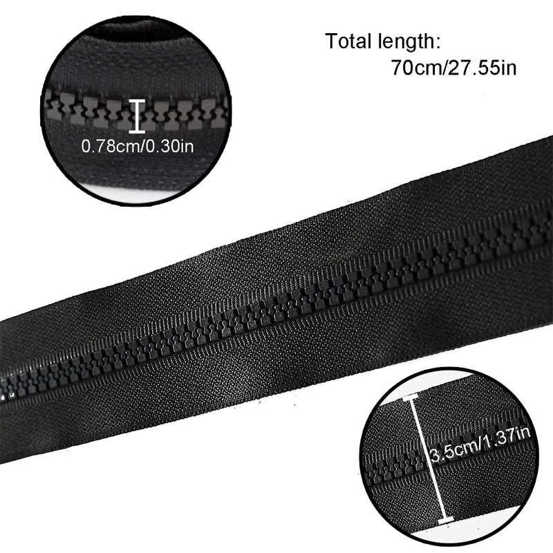 - Dimensions: zipper length: 70 cm. Zipper Width:38mm Chain Size: #8
