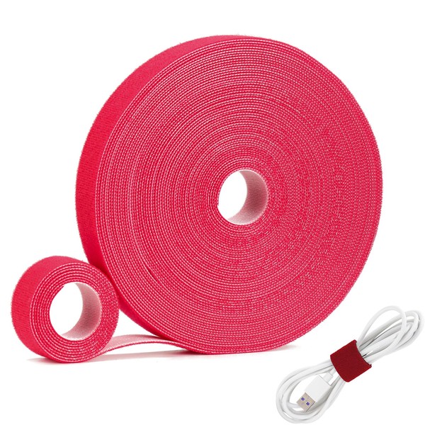 1"x60ft Hook and Loop Roll Double-Sided Strips, Adjustable Fastening Cable Ties, Cut-to-Length Cinch Self-Gripping Strap, Hose Wires and Water Pipes Organizer, Reusable Cord Management Ties (Red)