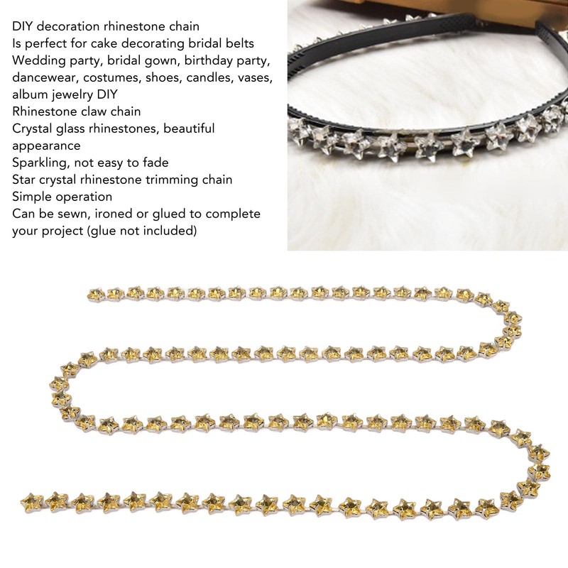 1 Yard Star Rhinestone Trim Chain 0.4in Width DIY Cuttable Crystal Rhinestone Claw Chain DIY Decoration Rhinestone Chain Yellow