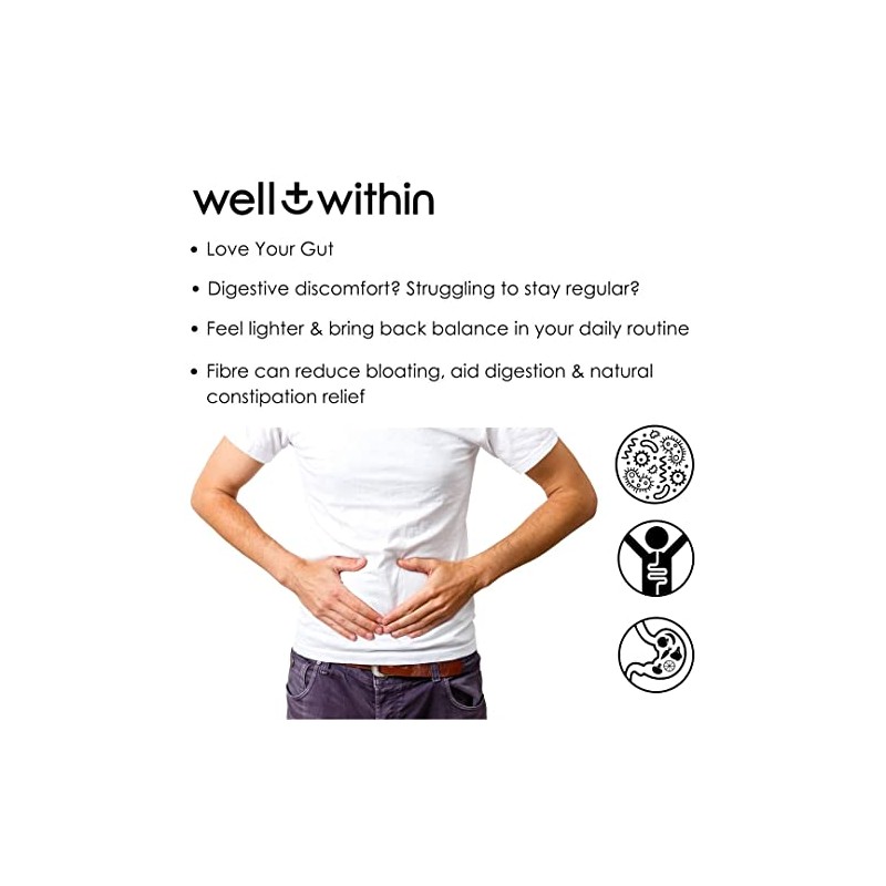 - LOVE YOUR GUT : Unique 4 in 1 dietary fibre formulation : Chicory Root Inulin Prebiotics, Psyllium Husk Powder (Ispaghula Husk), Pea & Acacia Fibre. Plant based, Insoluble + Soluble fibre blend, with Prebiotic FOS Fructans. 4 Types of Fibre, formulated by nutritionists to nourish good gut bacteria in your gut microbiome, that aid digestive health.