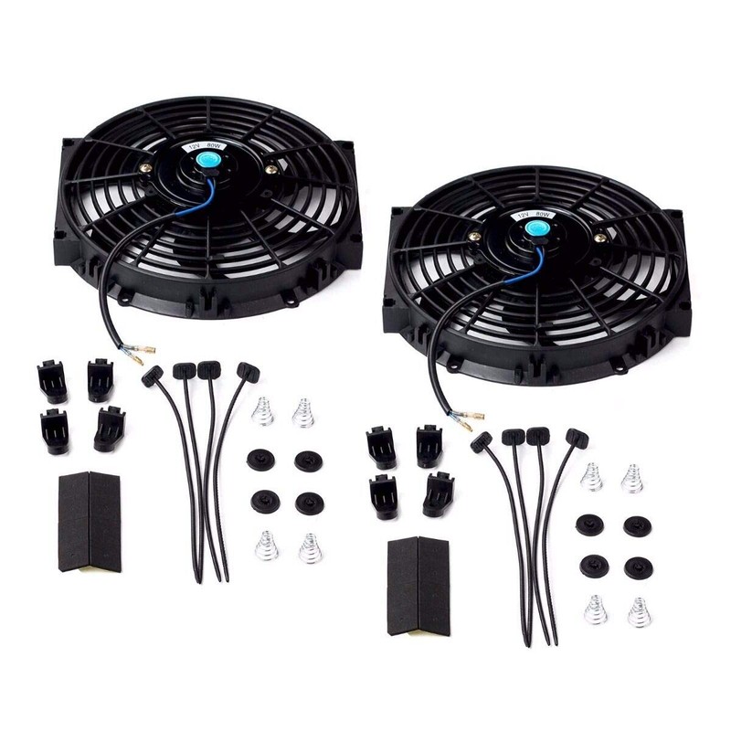 10" 12V Universal Slim Fan Push Pull Electric Radiator Cooling 800 CFM Fan Mounting Kit Black (Pack of 2)