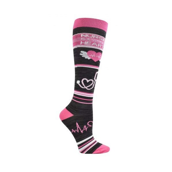 10-14mmHG Compression Socks Nursing is a Work of Heart (Pink & Black) XL Size