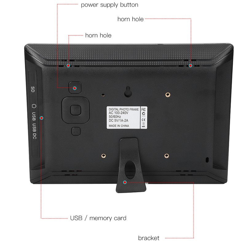 1、10.1 inch IPS Shigh definition display screen. 2、Including alarm clock, calendar, weather and other display functions. 3、Support memory card, maximum 32GB. 4、Support multiple format photos, slideshow browsing, multiple multi-picture browsing modes, pictures. 5、Photo wireless cloud transmission, remote APP transmission. 6、Touching screen control, clear functions, easy control.