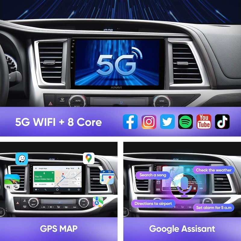 - 【5G WIFI&8Core for Toyota Highlander Radio Replacement】(2.4aHZ&5aHZ)WiFi network speed is faster, and accurate real-time playback of roadblock information ahead, to ensure a smooth APP network environment; The 8Core host CPU runs smoothly, and the Dual-Core GPU is great for building and rendering 3D environments, and it's an upgraded ultra HD QLED screen that gives you a higher resolution graphics visual experience.