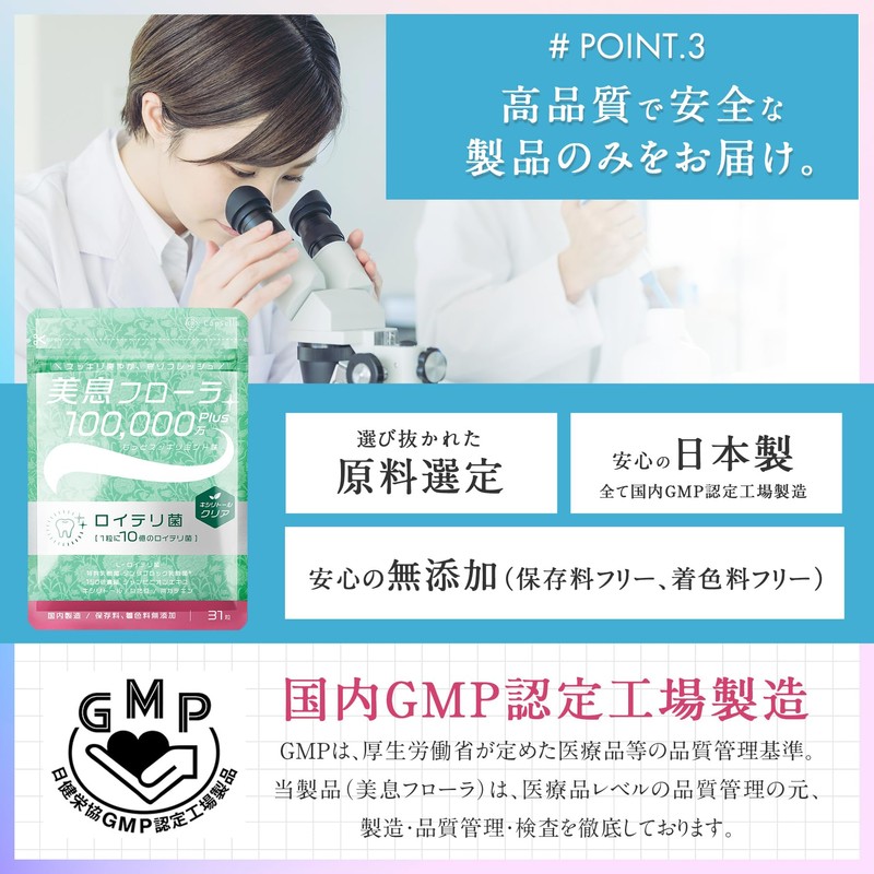 - ✅【こだわり成分をしっかり配合】美息フローラは、確かな成分のみ(L-ロイテリ菌、特許成分デンタブロック乳酸菌️︎、特許成分150倍濃縮シャンピニオンエキス、なた豆、キシリトール、茶カテキン)を厳選配合。主成分を推奨量しっかりと配合し1粒に凝集しております。
