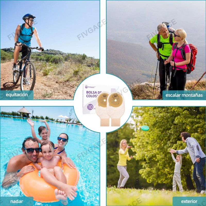 10 bolsas de colostomía escurribles Fivcage color nude reutilizables material Hyperflex 65 mm por 27 cm