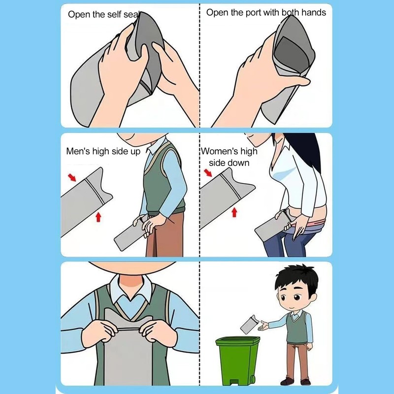 4. Multifuncional: esta bolsa de orina portátil es multifuncional, no solo puede soportar pañales, sino que también puede usarse para vómitos de emergencia, brindándole una protección completa.