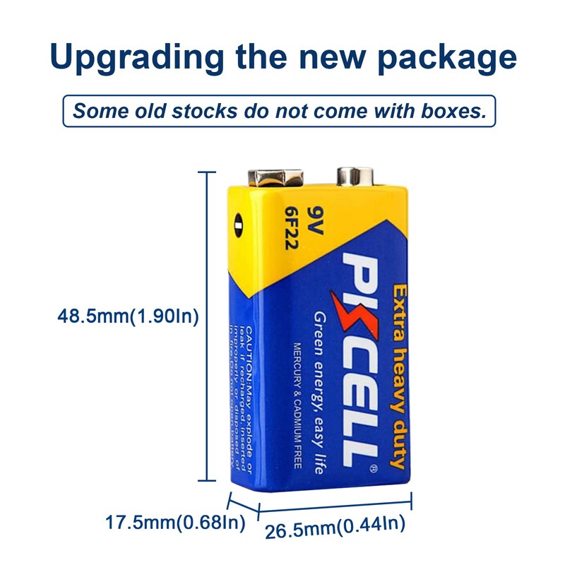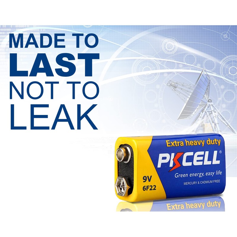 PKCELL 9V Battery Carbon Zinc for Smoke Detectors 6F22 Battery,Ultra Long-Lasting