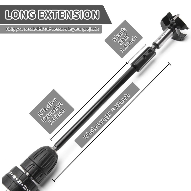 10" Forstner Bit and Hole Saw Extension, 3/8" Round Shank – Increases Drilling Depth by 8-3/4", Ideal for Woodworking and Deep Bore Applications