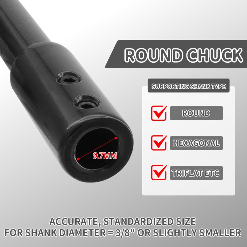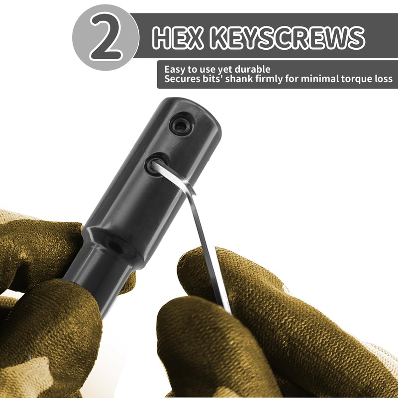 - Easy to Use – Quick and simple installation with the included hex key. Adjust the set screw, insert the drill rod, and you're ready to drill in no time.